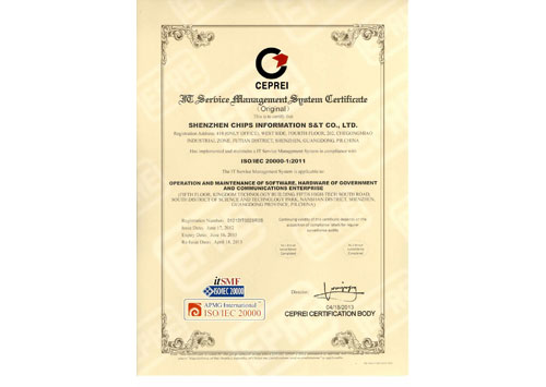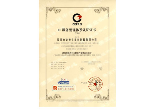 • IT服務(wù)管理體系認證證書