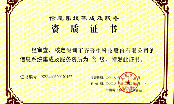 • 計算機信息系統(tǒng)集成三級資質(zhì)